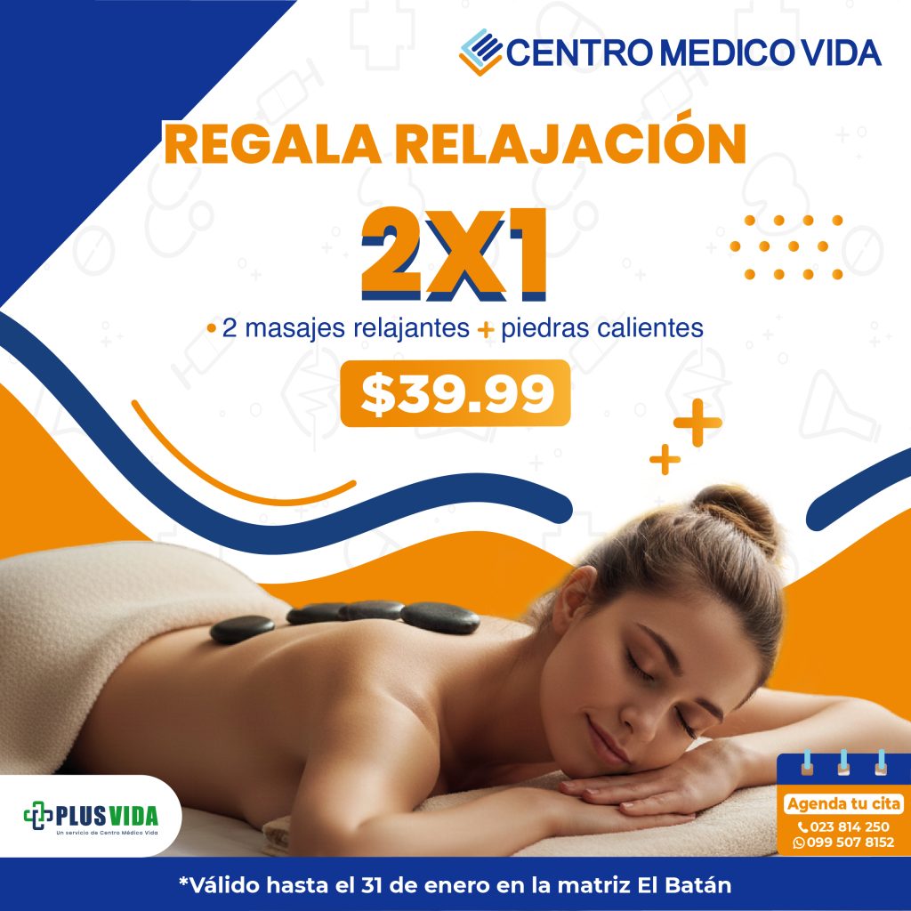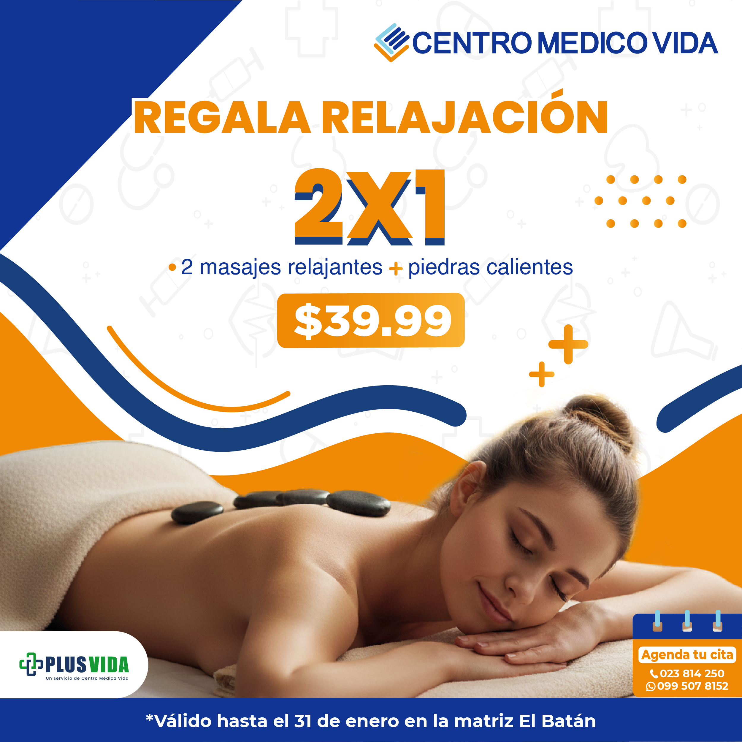 Incluye dos masajes relajantes + colocación de piedras calientes, que ayudan a aliviar tensiones musculares, mejorar la circulación y promover la relajación profunda.